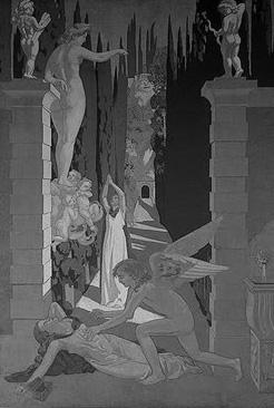 Главная → Художники → Морис Дени → Панно четвертое. Месть Венеры. Психея открывает шкатулку со сновидениями подземного царства, погружается в сон