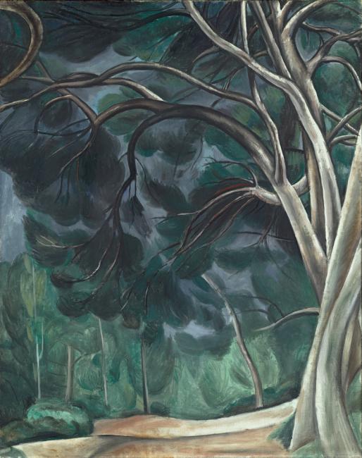 Пейзаж Дерена «Стволы деревьев» был исполнен в Мартиге и принадлежит к группе работ, в которых художник изображает виды сосновой рощи, трактуя их в условной манере. Здесь и следа не остается от фовистской манеры письма с ее необузданной яркостью красок. Дерен будто присыпает пейзаж серовато-серебристым пеплом, строя колорит картины на сочетании серо-сине-зеленых тонов с небольшим вкраплением желтоватых пятен, что наряду с отказом от воздушной перспективы и упрощением объемов вновь напоминает об уроках Сезанна. Несмотря на суровую строгость колорита и композиции «Стволы деревьев» отличает эмоциональная насыщенность.