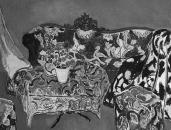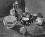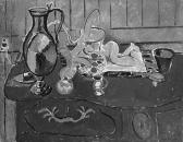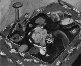 Посуда и фрукты на красно-черном ковре 61х73; холст, масло |