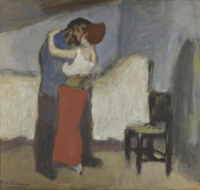 Впервые Пикассо появляется в Париже в 1900 году. С этим периодом связано создание небольшой картины «Свидание» (1900). В эти годы Пикассо часто обращался к мотиву свидания, который художник трактовал как тему человеческой близости. Двое обнимающихся людей изображены в интерьере, отчего сцена обретает замкнутый характер. Все второстепенные подробности опущены. Сами фигуры даны смелыми и выразительными цветовыми пятнами. В их объятии нет чувственности, идилличности. Напротив, во всей атмосфере картины звучат отголоски будущей драмы, отчего обычная жанровая сценка обретает особую значительность. Кажется, Пикассо намеренно стремился усилить свои впечатления от созерцания страданий: часто посещая дома для сумасшедших, больницы для проституток, он наблюдал и зарисовывал увиденные им сцены. Его парижские впечатления в сочетании с испанской традицией позволили художнику развить тему гордой нищеты и возвышенного убожества, в которой остро звучит ощущение безысходности, драматизма существования для тех, кто принадлежит к «дну» общества, стоит на нижних ступенях социальной лестницы. Различные варианты данной тематики художник развил в произведениях, созданных между 1901—1904 годами. Этот период в его творчестве получил название голубого