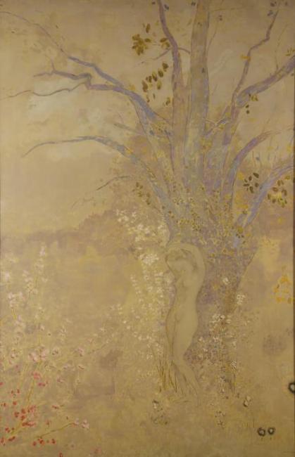 Наряду с цветами, женскими профилями устойчивым мотивом редоновского искусства было кряжистое дерево, использованное художником в картине «Весна». Древний символ часто воспринимался как знак вечно обновляющейся природы и бессмертия. В сочетании с цветами и обнаженной женской фигурой этот мотив превратился в утонченный художественный образ, который оказывается сродни высказыванию Мориса Метерлинка, писавшего, что деревья и цветы «дают пример всех великих душевных движений — должного сопротивления, мирной отваги, порыва вверх, скромной важности, молчаливой победы и постоянства». Почти монохромное цветовое решение картины усиливает суггестивное восприятие картины, сближая ее по воздействию на зрителя с музыкой.