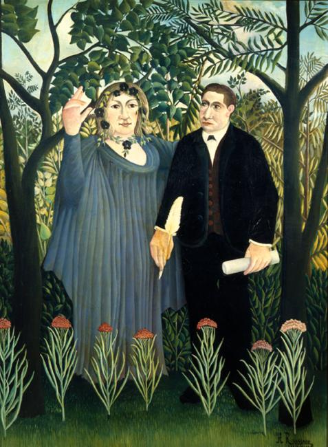 На полотне Руссо запечатлел своего друга, выдающегося поэта и художественного критика ХХ века Гийома Аполлинеpа и его спутницу, художницу Маpи Лоpансен. Он изобразил их в изобретенном им жанре «поpтpета-пейзажа». Цветы на переднем плане должны, по замыслу автора, символизировать бессмертную душу поэта. Маpи Лоpансен отведена особая роль музы-вдохновительницы, в связи с чем она изображена в античном пеплосе. Аполлинеp держит в руке гусиное перо – атрибут своего ремесла. Название картине дал сам художник.