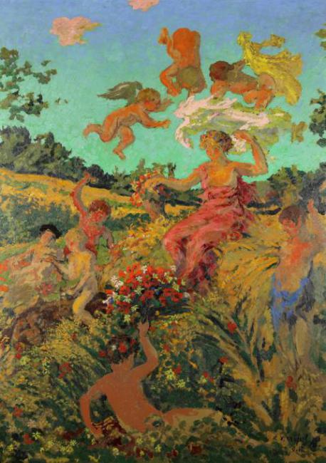 Картина является парной к одноименному произведению, хранящемуся в Эрмитаже. Создавая образ прекрасной средиземноморской Аркадии, художник умело соединяет мифологический вымысел с современной сельской идиллией. С языческой мощью звучит в картине Русселя гимн природе, упоение жизнью. Это произведение было выставлено в Осеннем салоне 1911 года. После того, как полотно приобрел И. А. Морозов, живописец переписал картину яркими красками, отчего она приобрела необходимое декоративное звучание. Кажется, что сочные цвета «Сельского праздника» передают праздничный дух французского Средиземноморья. В период работы над этим произведением Руссель трудился над занавесом театра Елисейских полей в Париже, используя для него ту же самую тему — танец на пленэре. Возможно, что «Сельский праздник» стал своеобразной подготовительной работой для декоративного занавеса парижского театра.