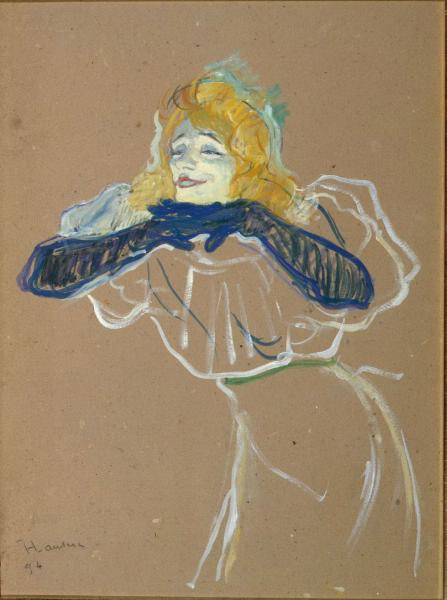 Одно из немногочисленных произведений Тулуз-Лотрека в российских собраниях изображает известную французскую певицу Иветт Гильбер в момент исполнения популярной английской песенки. Этот рисунок послужил этюдом для обложки парижского журнала «Рир». «Певица собиралась на следующий день в Лондон, но, узнав, что Тулуз-Лотрек должен дать ее портрет в “Рир”, не только согласилась позировать ему, но сама настояла на этом и специально для него спела очаровательный припев» (Анри Перрюшо). С этого рисунка началось многолетнее сотрудничество Лотрека с «Рир» и личная дружба с его издателем Арсеном Александром, в дар которому был преподнесен портрет.