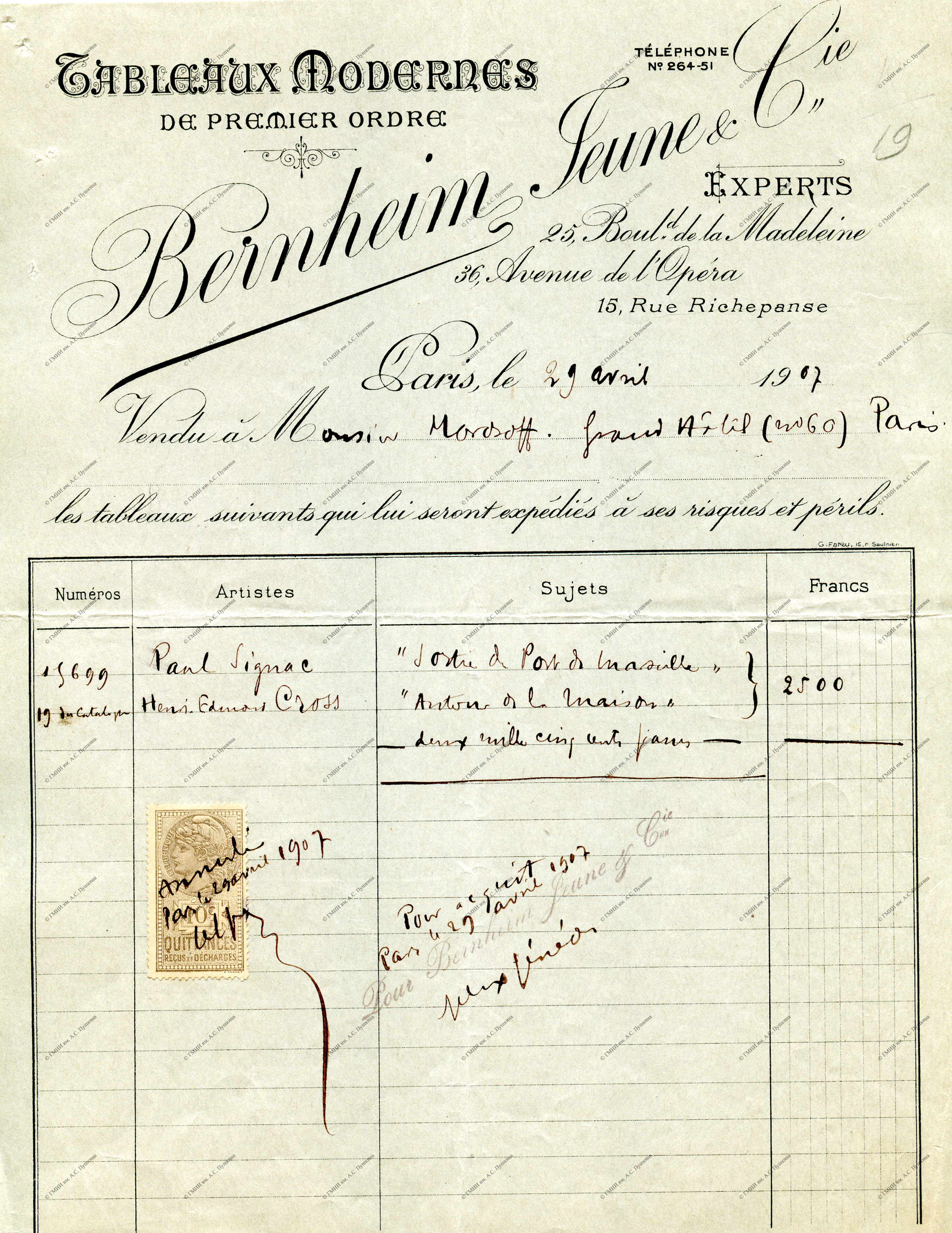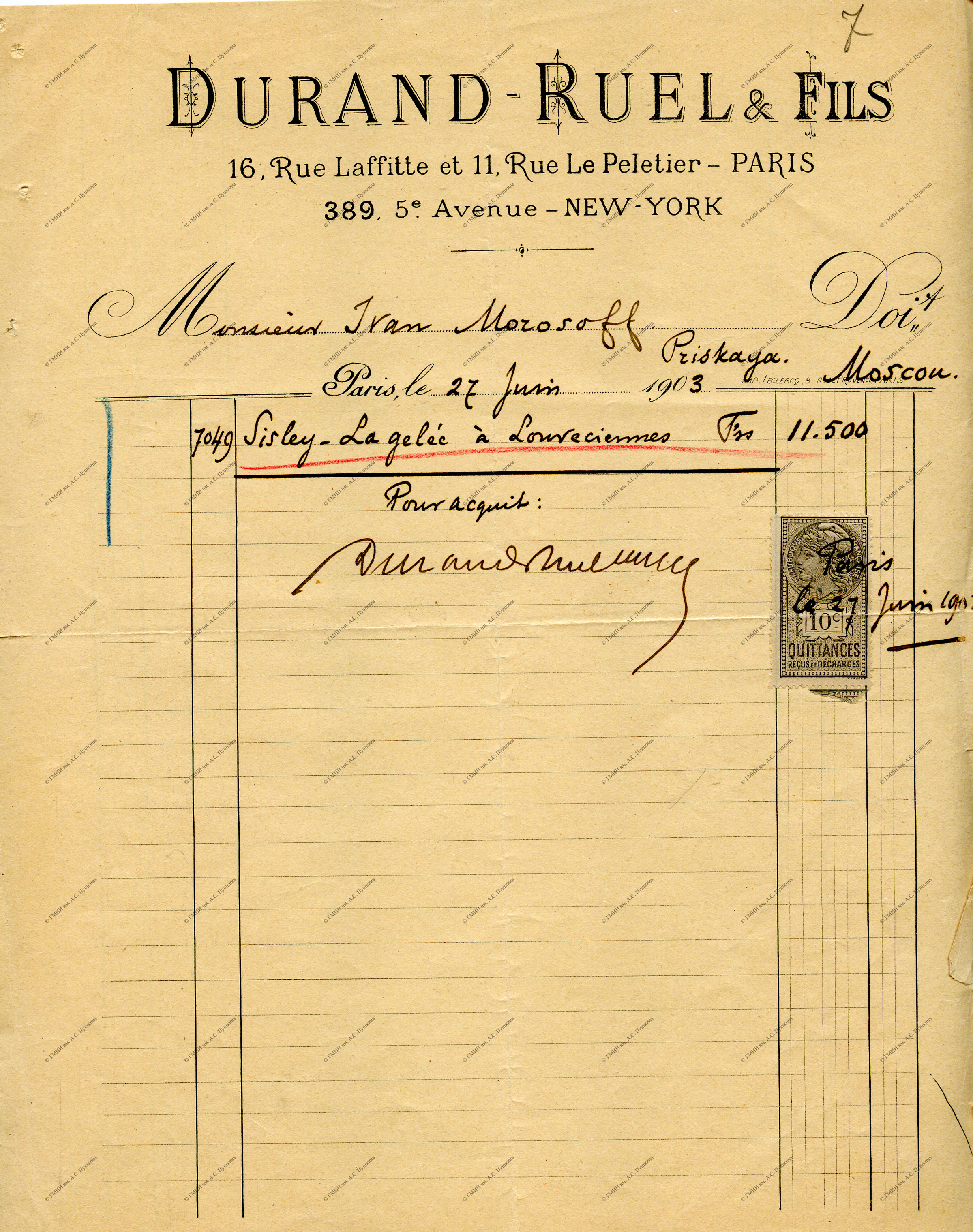Деловой человек, процветающий предприниматель, И.А.Морозов сохранил все счета на приобретенные им картины, что позволяет проанализировать состав коллекции, движение художественного рынка, меняющиеся увлечения коллекционера.