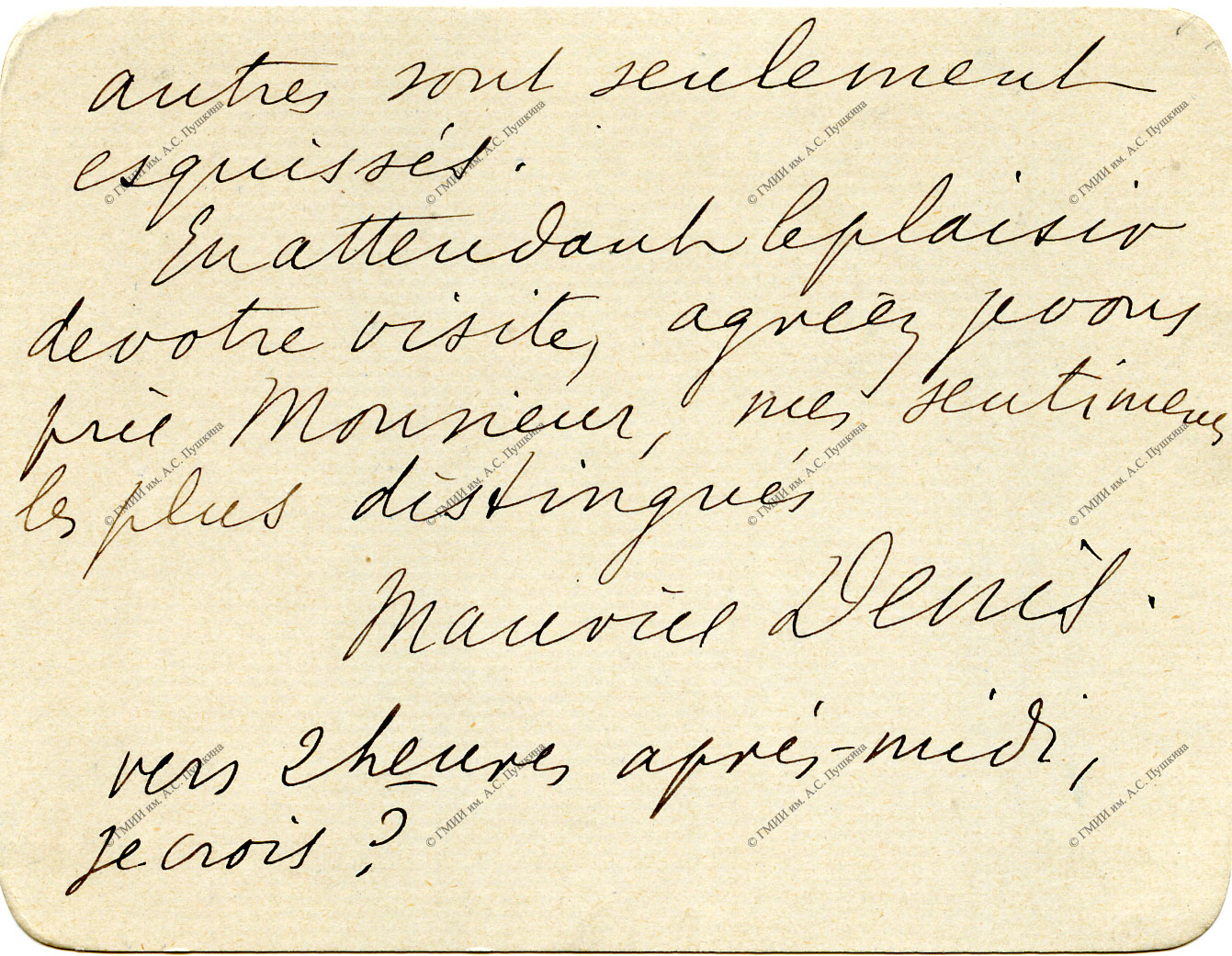 7. Дени М.(DENIS Maurice) Морозову И.А.Письмо. [1908 г.]