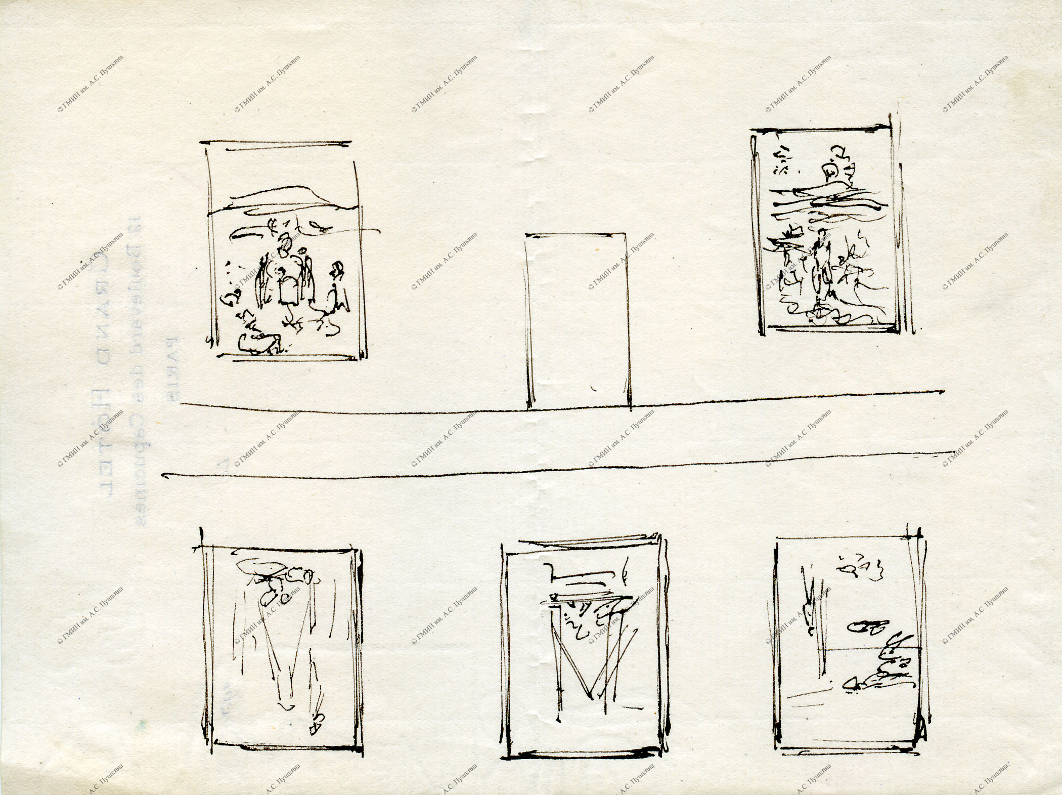 8. Рисунок (набросок карандашом ) размещения Триптиха Боннара "Средиземное море" в доме И.А.Морозова.
